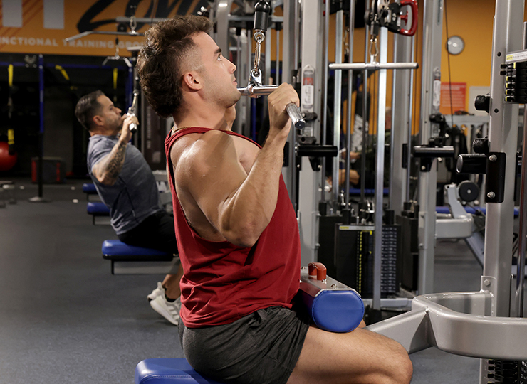 Perform 3 sets of 8–12 reps. Keep your arms slightly bent throughout; don’t turn it into a shoulder exercise.