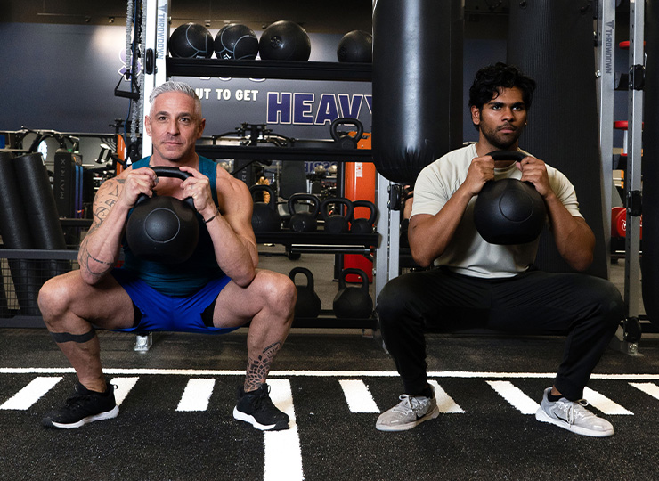 A classic move with a twist, the sumo squat shifts your typical squat position by widening your stance to about shoulder width with toes slightly turned out. This stance emphasizes the inner thighs, glutes, and quads.